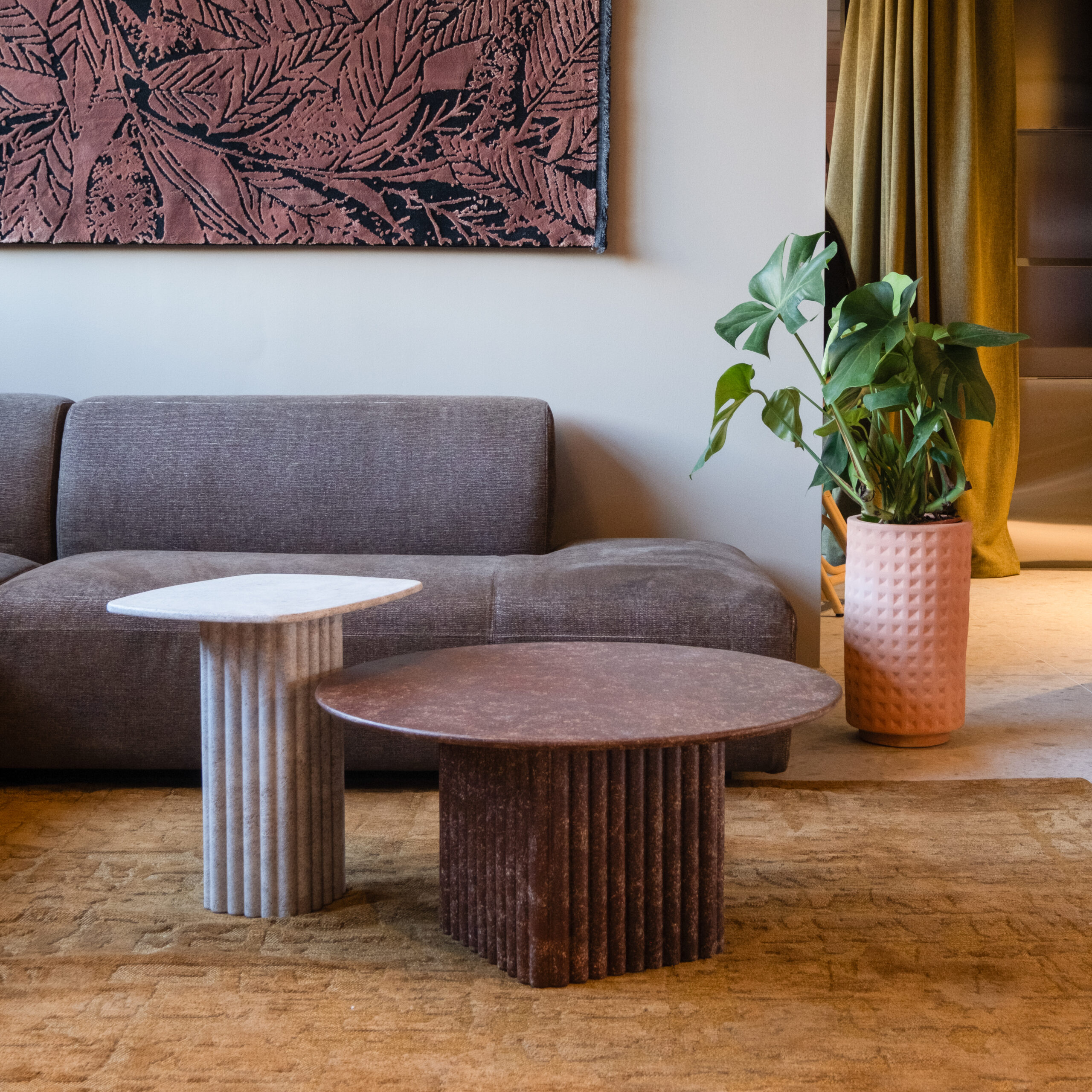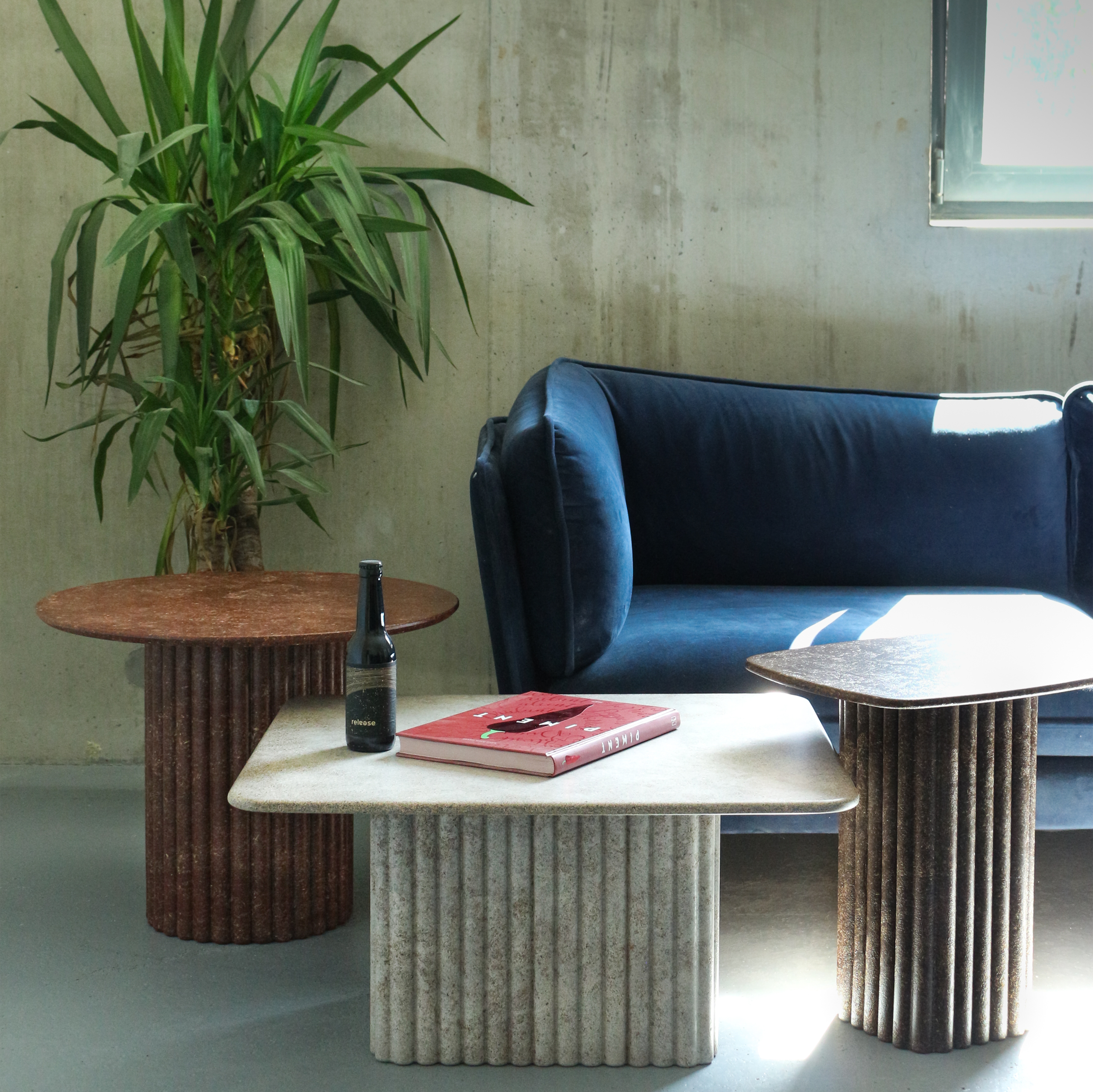 Tout en volume et en mouvement, notre table basse Citra est composée à 100% de matières recyclées biosourcées.
